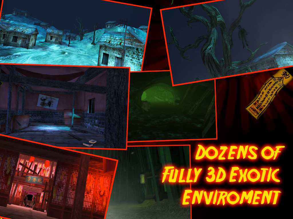 -Fully 3D environment, from the ancient forest, maze, dungeon, grave, temple until the great wall of China, and many more.
