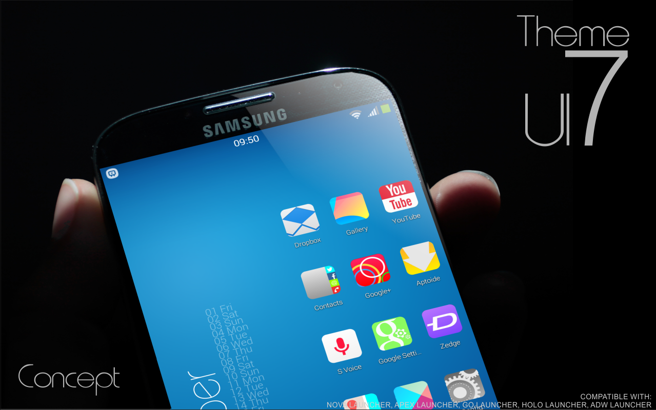 This is Theme Concept ui 7 Hd. This is an icon pack for many Populars Launcher . As Apex Launcher, Nova Launcher, ADW, Holo, Go launcher, Action Launcher, and others. Also compatible.