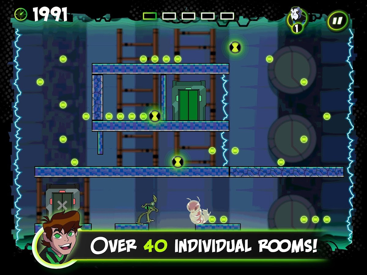 Collect power-ups to transform Ben into some of your favourite Omniverse aliens, each with their own special abilities - Shocksquatch, Kickin Hawk, Ball Weevil and Crashhopper.