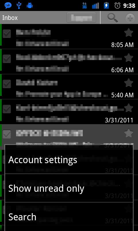 * Sort your mail by: Date received, Sender, Subject, Unread messages, messages containing attachments, or by starred/flagged messages