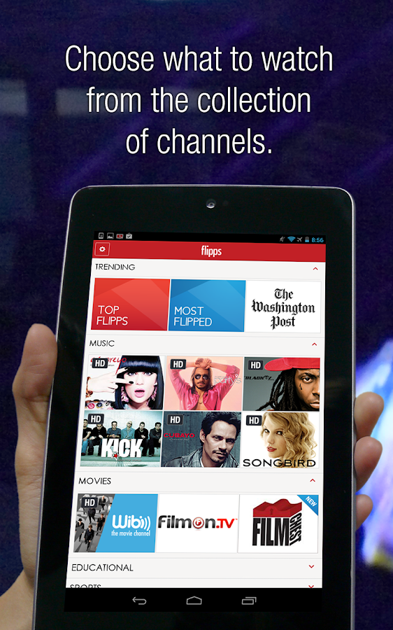 With Flipps, you are the ruler of your content. Choose from over 100 specially curated channels in categories like Movies, Music, News, Sports, Entertainment and Lifestyle. Flipps automatically discovers any connected TVs around you, so playing your content on the big screen is just a tap away. There’s no dongle, no fancy box, and definitely no extra TV apps - just a powerful Android app in a very small package.