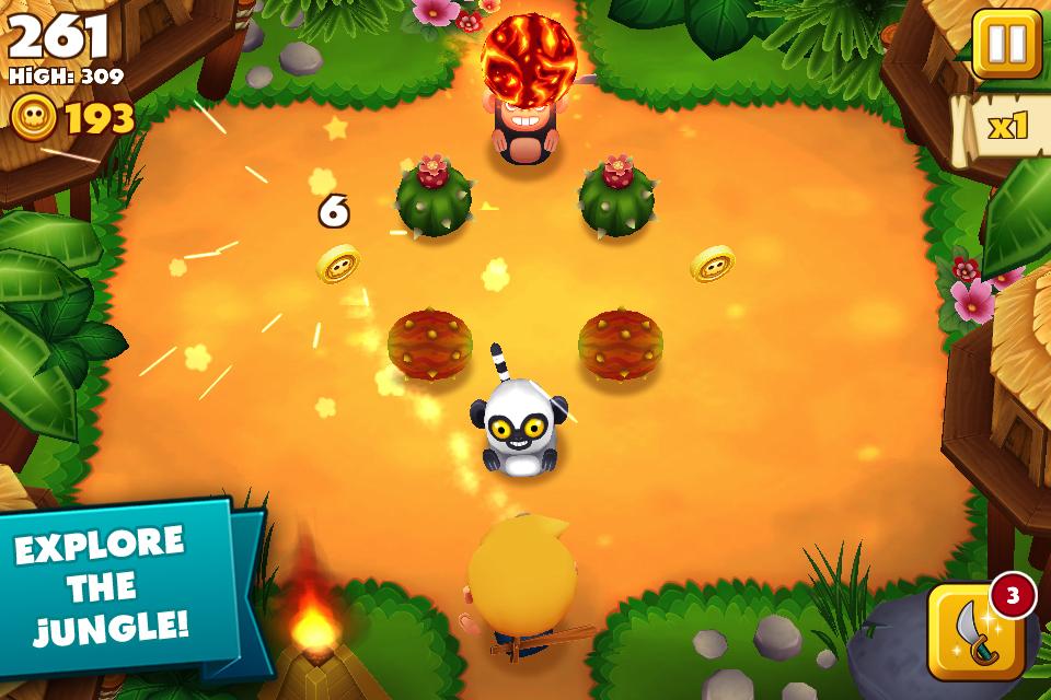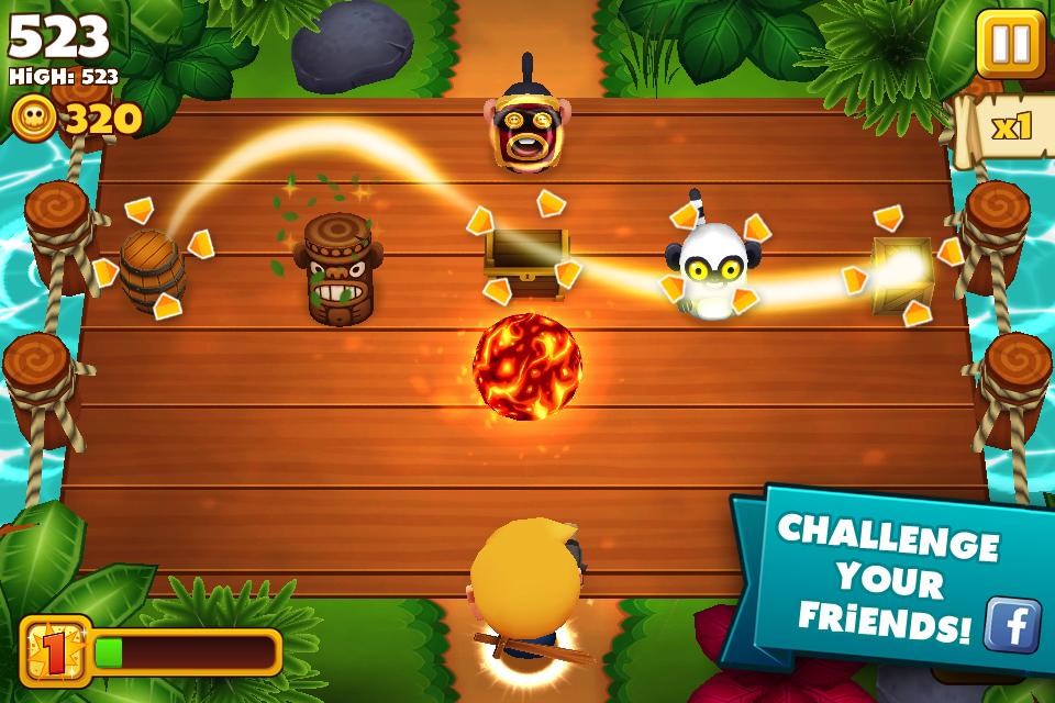 Retrieve the stolen treasure! Pick your favourite pirate, set off into the jungle and find those meddling monkeys. Clear through as many jungle areas as possible; avoid obstacles, hit the monkeys for treasure, while avoiding banana and coconut attacks and making amazing combos! With fast-paced finger tapping action and an endless variety of formations to experience.